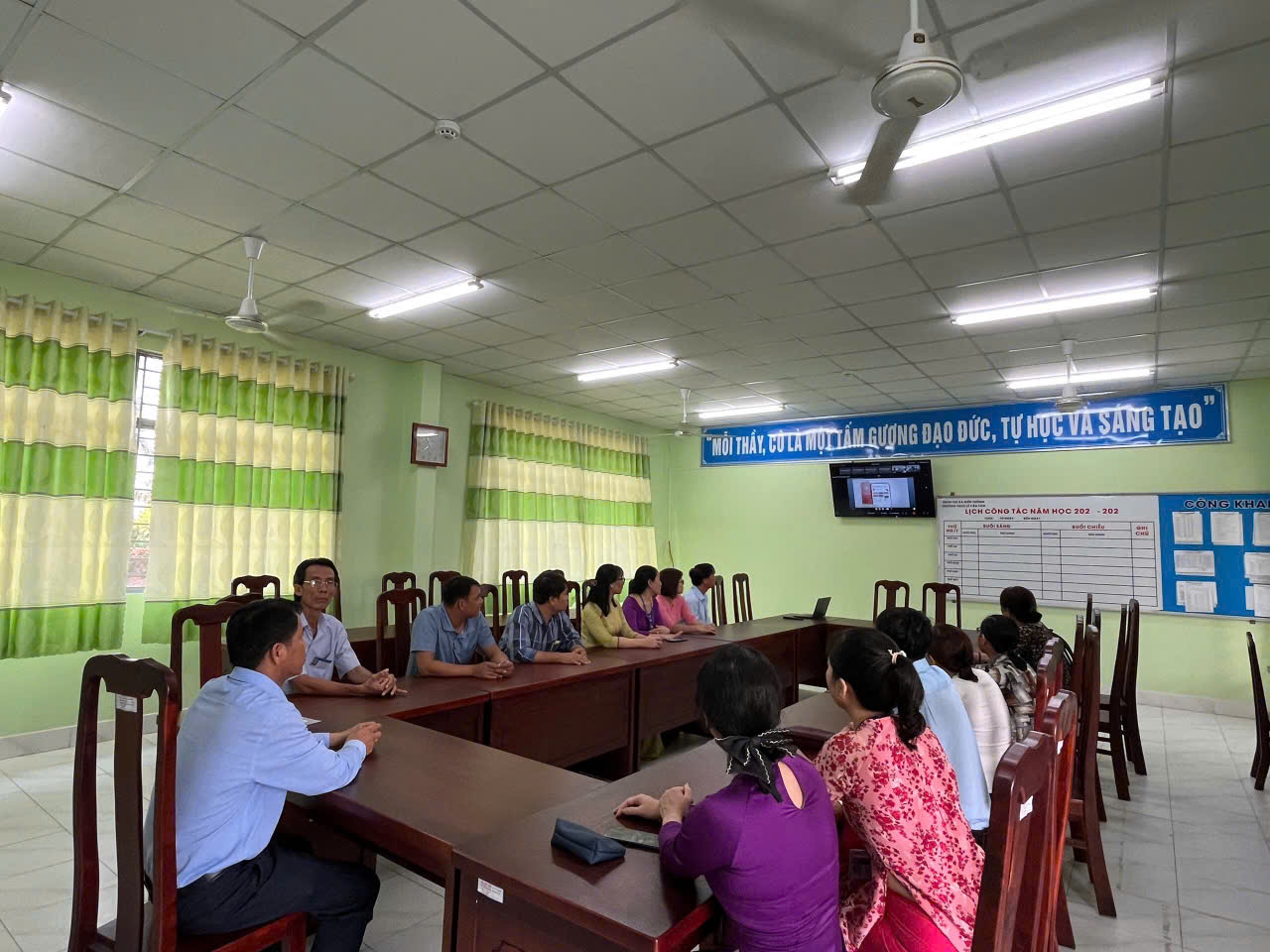 Tại điểm cầu của nhà trường, các đảng viên trong chi bộ đã tham gia đầy đủ, nghiêm túc lắng nghe các nội dung quan trọng của hội nghị.